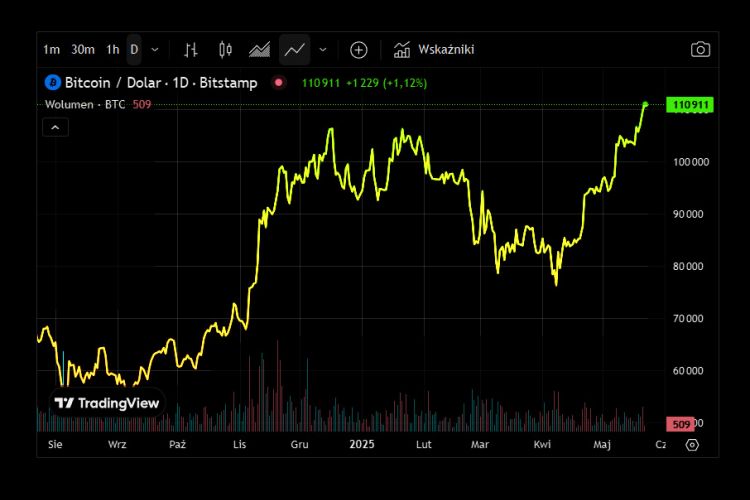 21 maja 2025 roku Bitcoin osiągnął nowy rekord wszech czasów, wzrastając do 109 481,83 USD, przebijając poprzedni szczyt z stycznia 2025 roku. Wzrost o 1,93% w ciągu 24 godzin odzwierciedla rosnący optymizm na rynku kryptowalut. Według danych z Binance, 22 cena Bitcoina chwilowo osiągnęła nawet 110 800,08 USD, co potwierdza siłę obecnego trendu wzrostowego.